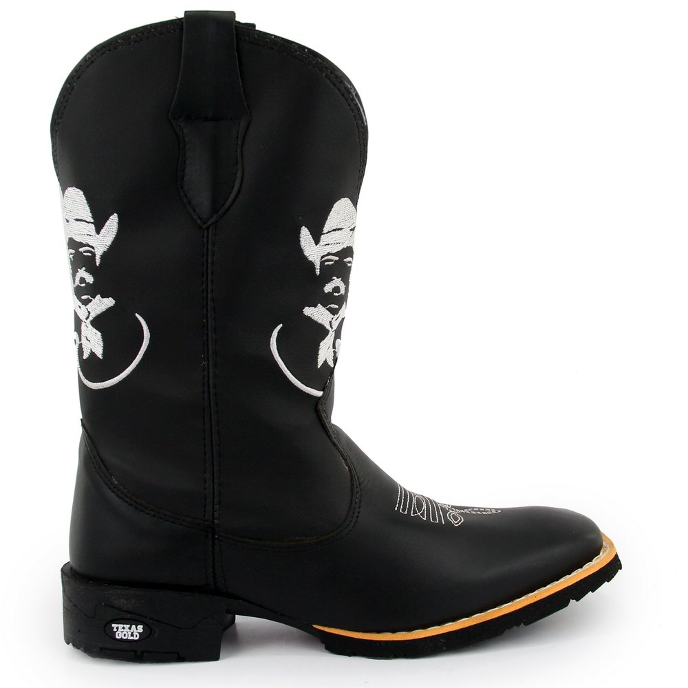 Bota Texana com cabedal confeccionado em couro, couro confortável, modelo bico quadrado, bordado no cano com o desenho de dois cavalos, adaptando-se ao estilo brasileiro, trazendo o maior conforto, flexibilidade, durabilidade e facilidade ao coloca-la.