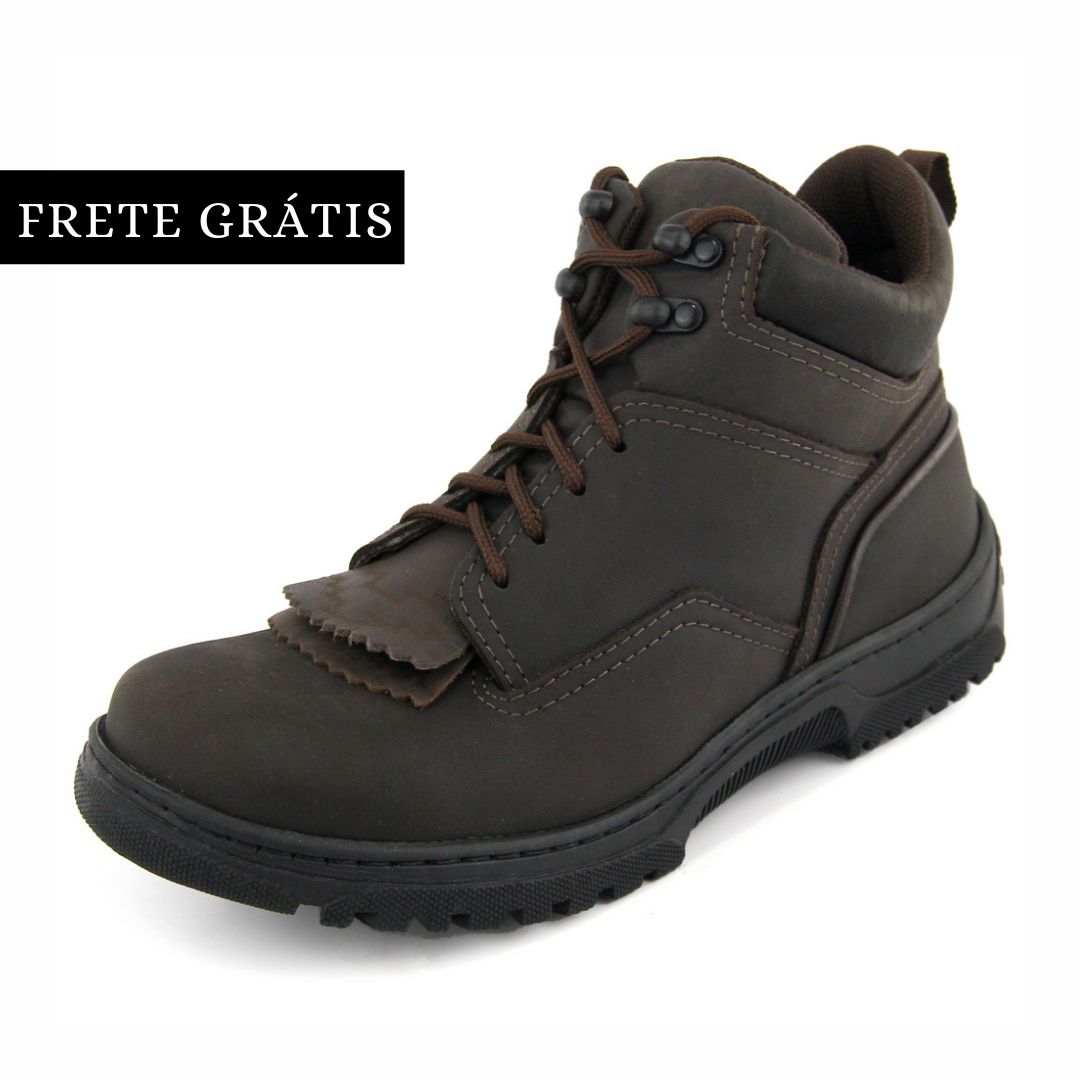 Produto confeccionado em couro, o tênis country possui padrões de qualidade elevado, Detalhes costurados na parte externa, passadores de cadarço reforçado, detalhe com franja no cadarço removível, no qual lhe proporcionarão conforto, alta durabilidade, estilo e todos os benefícios que o couro natural tem a oferecer à saúde dos pés, perfeito para o dia a dia e para o trabalho intenso seja no campo ou na cidade através do seu conforto e alta durabilidade proporcionada.